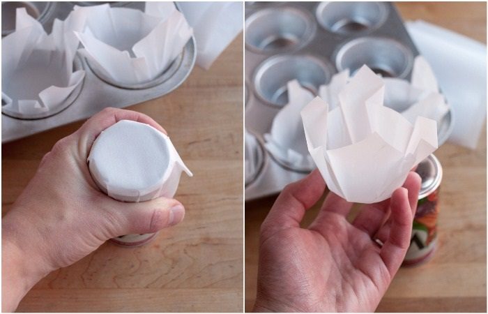 Итак, вам понадобится пергаментная бумага, нитки и обычный стакан с гладкими стенками. Обмотайте дно бокала пергаментом, закрепите ниткой и осторожно вытащите стакан – получится самодельная формочка, в которую можно смело наливать тесто и ставить выпекаться. По такому же принципу можно использовать фольгу – получится ничуть не хуже, даже лучше, ведь она прочнее, чем пергаментная бумага, и лучше держит форму.