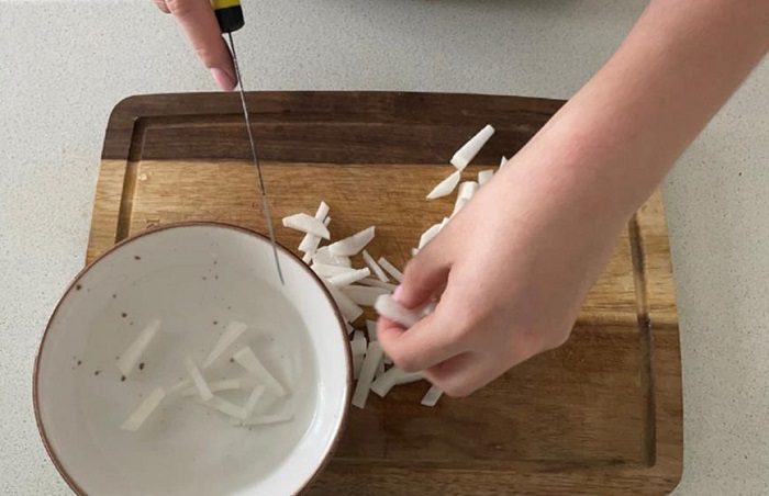 Замочите нарезанную редьку в воде.