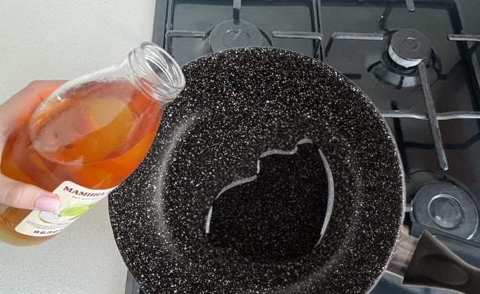 Разогрейте сок на сковороде.