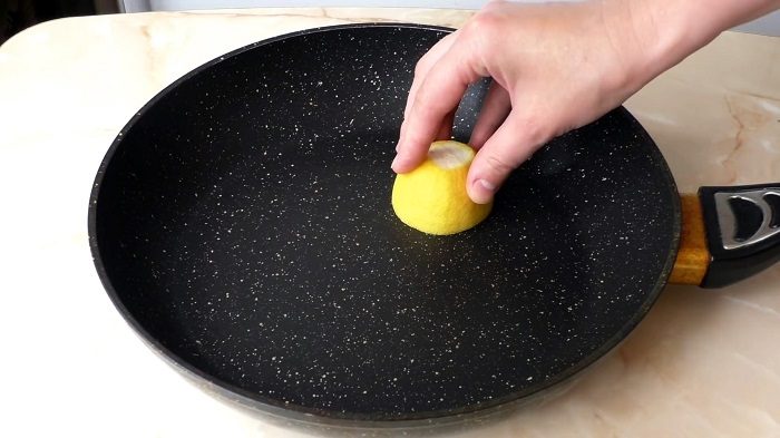 Половинка лимона очистит сковороду.