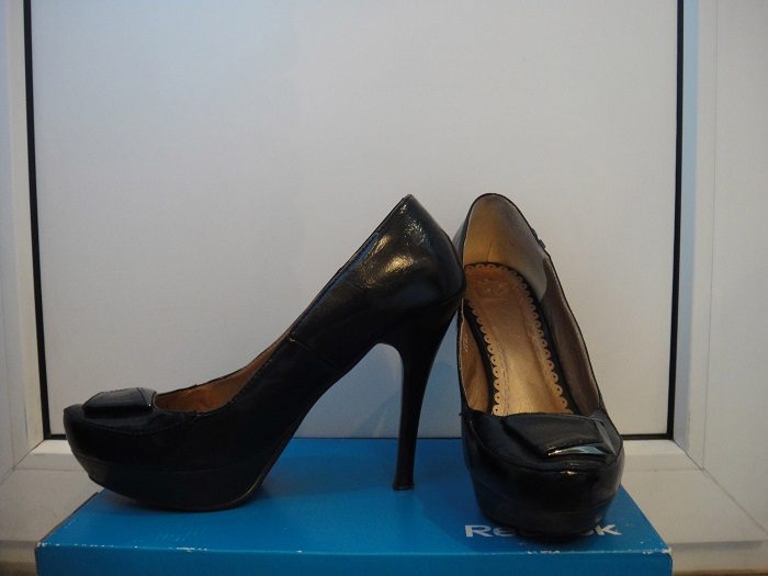 Черные туфли на высоком каблуке.