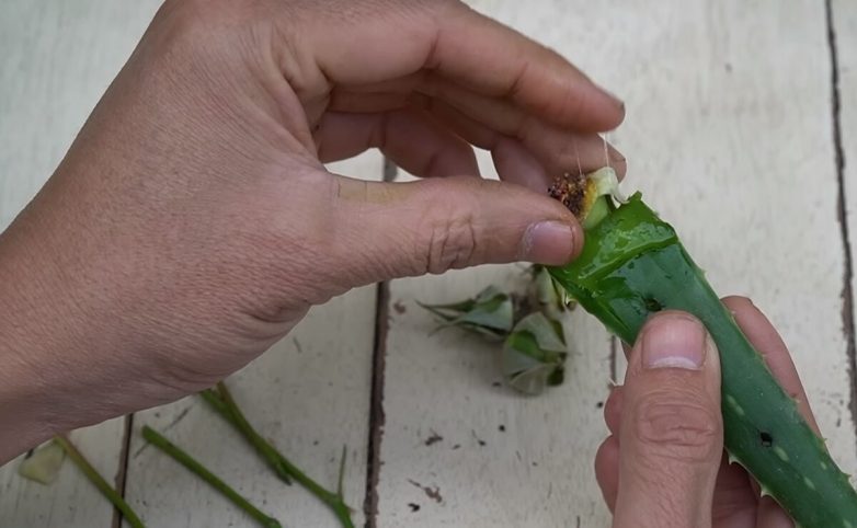 Места срезов обработайте с помощью алоэ вера, который поможет обеззаразить срез и даст бутону огромное количество питательных веществ, необходимых для дальнейшего укоренения.