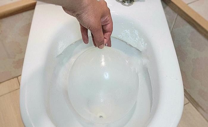 Лайфхак звучит странно и часто воспринимается со скепсисом, однако стоит лишь один раз им воспользоваться, как все недоверие уходит. Не пугайтесь – шарик не придется использовать вместо ершика или другого инвентаря для чистки унитаза. Он будет служить своеобразной пробкой для слива, чтобы у вас появилась возможность, наполнить сантехнику водой.