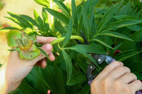 Первое, что должен знать каждый, кто занялся выращиванием пионов — это то, что побеги нельзя обрезать сразу после цветения. Это объясняется тем, что благодаря листьям происходит процесс фотосинтеза растений. Лишая растения зелени, мы лишаем их необходимого питания. После цветения обязательно необходимо обрезать засохшие цветы, которые также забирают на себя часть питательных веществ.