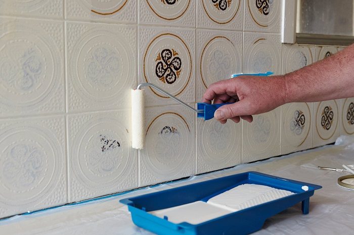 Продолжая тему покраски, упомянем кафель. Он тоже входит в категорию тех предметов на кухне, которые не обязательно менять – можно просто изменить внешний вид с помощью краски (но лишь в том случае, если плитка на фартуке находится в хорошем состоянии).