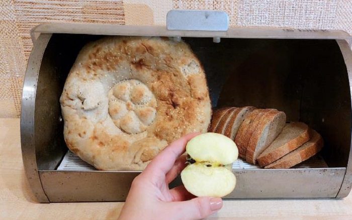Если вы хотите увеличить срок годности хлеба, рекомендуем воспользоваться лайфхаком, который активно применяли еще наши бабушки. Просто положите в хлебницу или в пакет, в котором лежит батон, кусочек яблока. Фрукт будет впитывать в себя лишнюю влагу и, тем самым, продлит свежесть выпечки. Обратите внимание, что эта хитрость сработает лишь в том случае, если вы храните буханку не на открытом воздухе. А вот хлеб, который лежит на столе без пакета или какой-либо другой упаковки, засохнет уже к вечеру, и никакие яблоки ему не помогут.