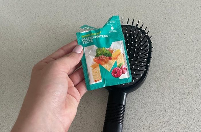 Своевременный уход за расческой станет гарантией того, что на ваших волосах не окажется ничего лишнего, и они долгое время будут находиться в идеальном состоянии. А чтобы процедура чистки была максимально быстрой и эффективной, используйте разрыхлитель теста. Налейте в миску литр теплой воды, добавьте немного разрыхлителя и положите расческу в раствор примерно на полчаса. После этого вам останется лишь хорошо промыть ее под проточной водой и высушить.