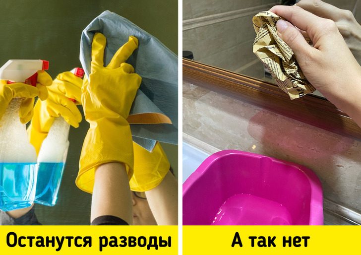 Чтобы на зеркале после мытья не оставалось разводов, рекомендуется использовать чистящие средства, которые не содержат мыла и ароматизаторов, поскольку именно эти добавки и оставляют после себя пятна. Лучше всего протирать зеркало чистой водой и обычной газетой, которая обладает высокой абсорбирующей способностью и впитывает любую грязь и воду, не размазывая ее.