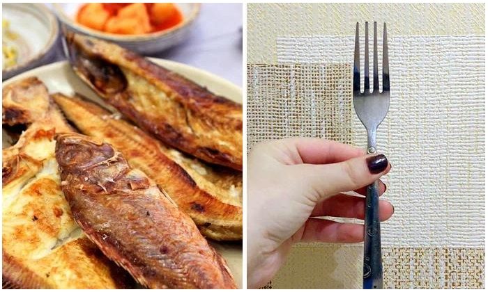Ну что, убедили? Тогда рассказываем, как определить готовность рыбы – этот лайфхак является не менее полезным, чем предыдущие. Возьмите обычную вилку и попробуйте аккуратно отделить мякоть от позвоночника. Если получается, значит, рыбу уже можно снимать со сковороды, если возникают сложности – нужно подождать еще. Этот прием приходится как нельзя кстати, когда в рецепте не указывается точное время приготовления. Тогда вы можете легко себя обезопасить от сырого блюда.