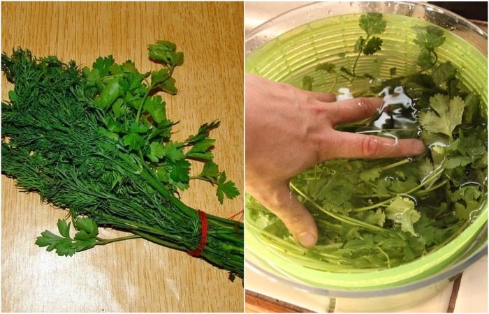 Замочите петрушку с укропом в смеси воды и уксуса
