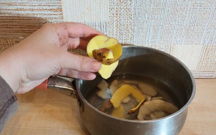 Прокипятите в кастрюле картофельные очистки.