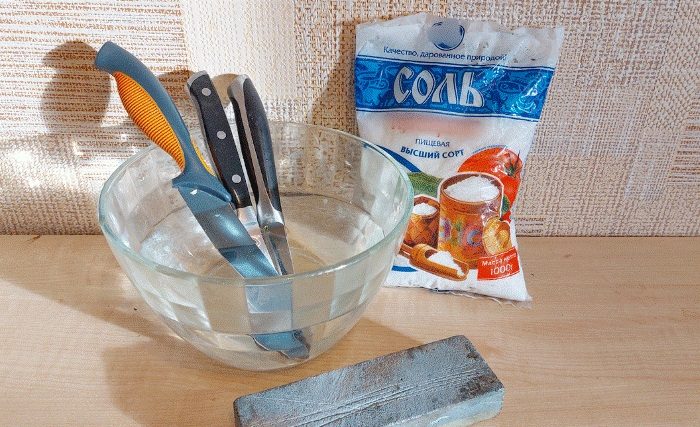Лайфхак 7: Ускорить заточку ножей с помощью соленой воды