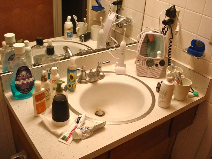Недостаток систем хранения провоцирует бардак в ванной комнате.