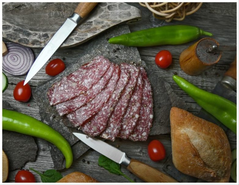 Вяленые колбасы, такие как пепперони, салями.
