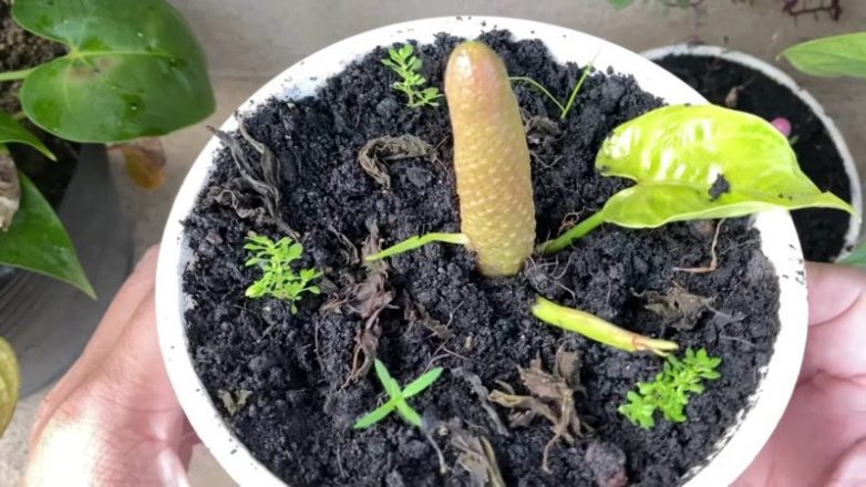 Регулярно увлажняйте соцветия-початки, чтобы уже через 40 дней получить желаемый результат: посадочный материал хорошо укоренится, начнет нарастать зеленая масса.