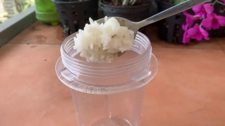 Чтобы приготовить удобрение залейте 1 ст л остывшего вареного риса 1 л воды и измельчите в блендере.