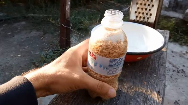 В основе пасты — хозяйственное мыло 72 %, самое дешёвое и простое. Натрите кусок мыла на крупной тёрке.