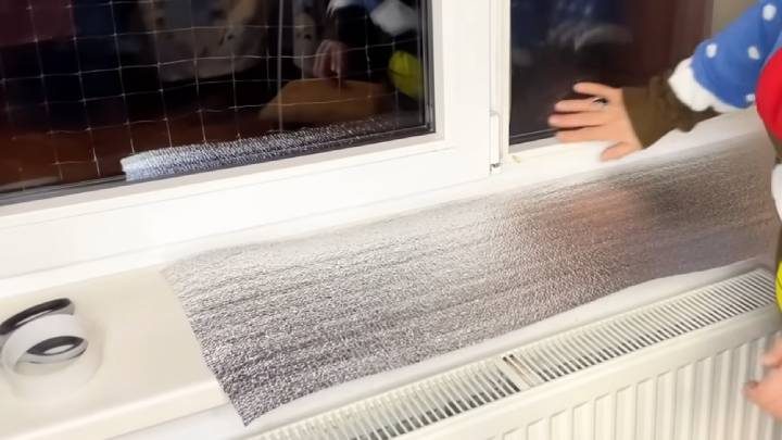 Обратите внимание: если у вас радиатор выступает над подоконником, то кусок подложки должен быть чуть шире подоконника. Тогда на окнах не будет скапливаться конденсат.