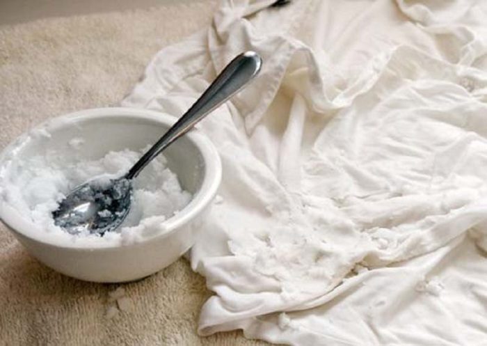 • Возьмите две-три столовые ложки сахарного песка и нанесите его на пятно, мягко втирая;