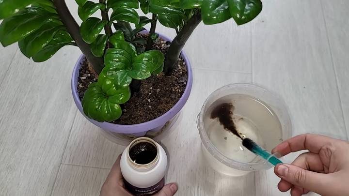 В чистом чернозёме замиокулькас будет расти только временно. Потом ему станет «трудно дышать» + начнёт застаиваться вода. Лучший грунт — рыхлый и в меру питательный: это смесь универсального грунта с торфом 1:1 + немного перлита и древесного угля.