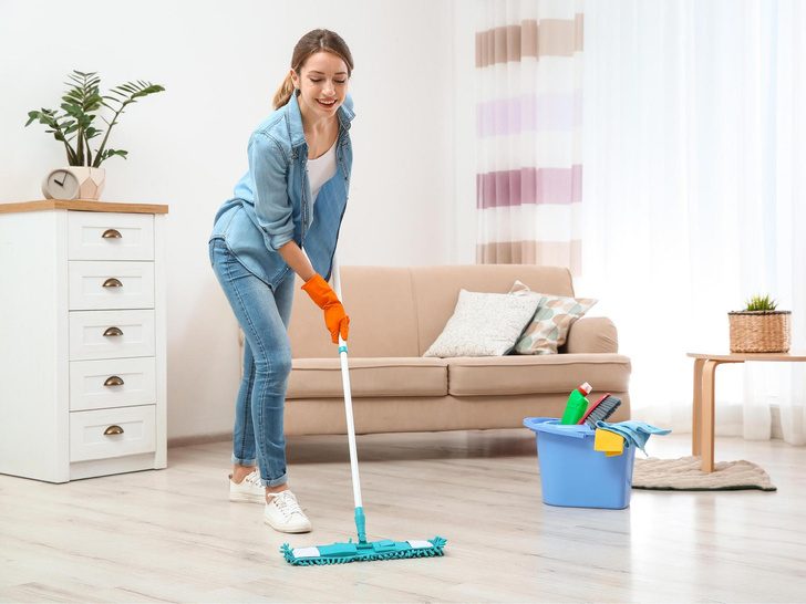 Раствор с шампунем для волос хорошо очищает пол из кафеля, плитки и линолеума — но только не паркет (на нем шампунь оставит разводы). Так, налейте крышечку шампуня в таз с теплой водой и помойте пол, как обычно. Плюс этого способа в том, что у шампуня натуральный запах и более безопасный состав (в сравнении с бытовой химией). Значит, вы сможете ходить по полу без обуви и не будете вдыхать ядовитые пары.