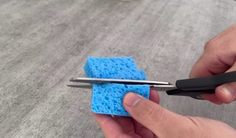Поместите губки в емкость с водой, а затем слегка отожмите их: губки должны быть влажными, но с них не должна литься вода.
