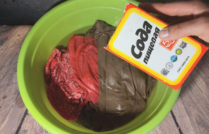 Также соду можно смешивать с порожком и кондиционером. Такое действие поможет сохранить цвет вещей как можно дольше, а тканям подарит мягкость.