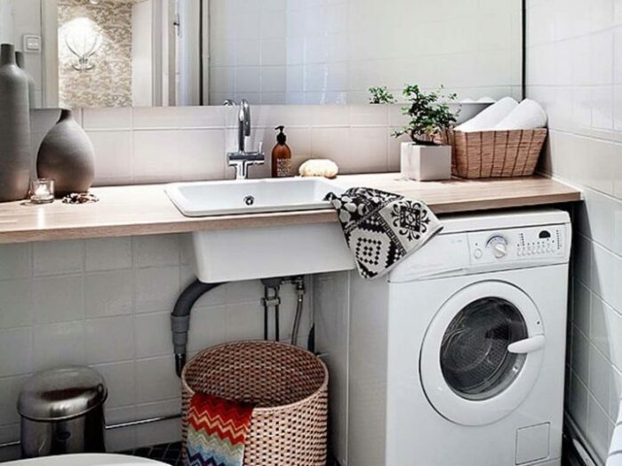 Исключением не стала и ванная комната, разместить в которой, по возможности, хочется даже стиральную машину, сохранив при этом эстетику. Решение найдено, так что ловите подборку эффективных советов от современных дизайнеров.