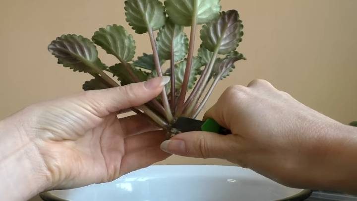 Омоложение фиалки поэтапноСамый простой способ омолодить фиалку и вернуть ей прежний вид — это полная обрезка. Обрезать нужно весь ствол.