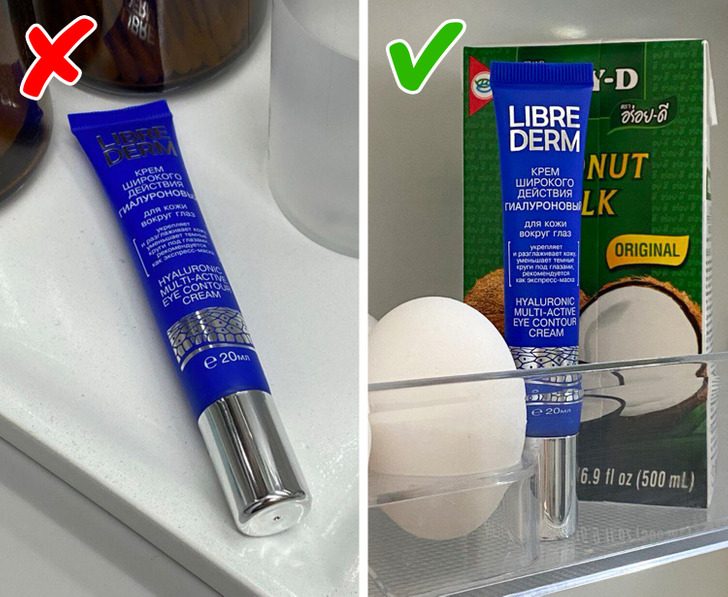 Сыворотки с витамином С, ретиноидами, пробиотиками, а также органические средства следует хранить в холодильнике. А вот тоники на водной основе, тканевые масли или крем для глаз — необязательно, но почему бы и нет? Охлаждающий эффект будет приятен для кожи, а еще поможет снять отечность и успокоить раздраженную кожу.