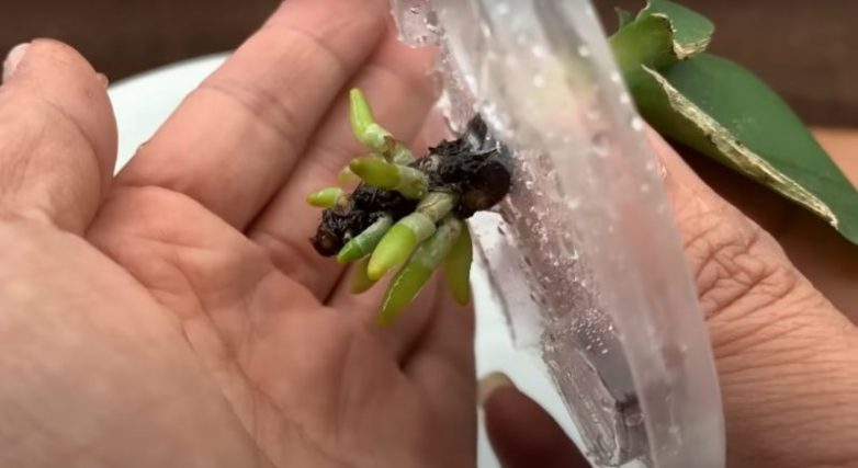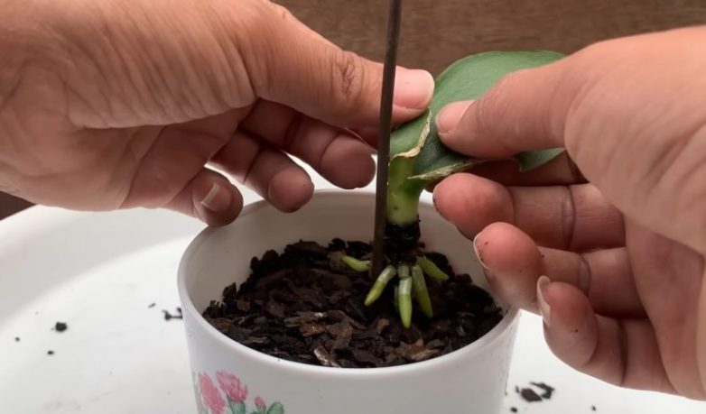 Молодую орхидею можно будет пересадить на постоянное место, где она продолжит активно расти.