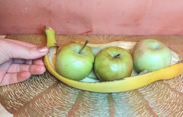 Вам потребуется лишь кожура от банана. Поместите в неё недозрелые фрукты и оставьте на ночь. Банановая кожура выделяет этилен, который за короткий срок поможет яблокам созреть до нужного состояния. И вы сможете наслаждаться сладкими плодами.