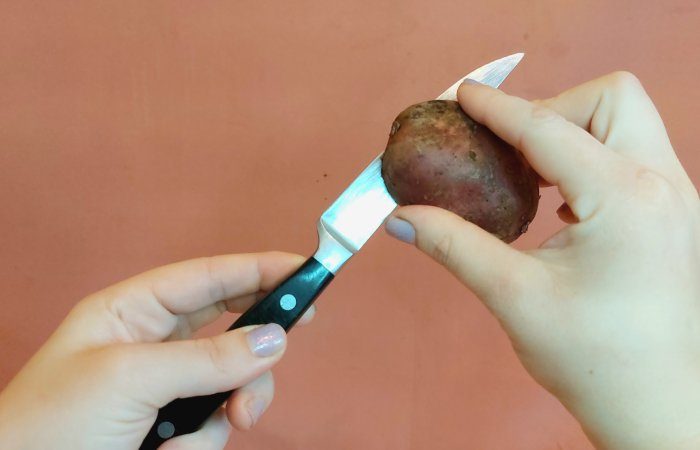Для того чтобы ваши ножи всегда сияли, вам не потребуются никакие специальные средства. Все, что вам нужно — обычный картофель. Половинкой сырого картофеля необходимо натереть лезвие, а через пару минут вытереть остатки крахмала салфеткой. Ваши ножи станут блестеть не хуже, чем на профессиональной кухне.