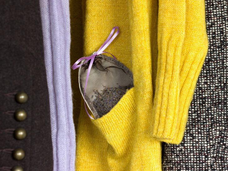 Саше — это ароматические тканевые подушечки или мешочки с засушенными травами внутри. Разложите несколько в основном отделении и ящиках гардероба, чтобы неприятный запах сменился цветочным благоуханием.