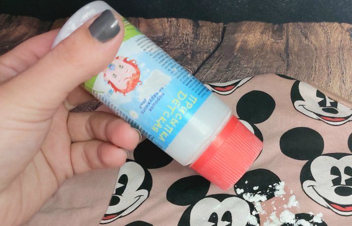 Все, что вам потребуется, — это тальк. К слову, его вполне может заменить детская присыпка, если она есть под рукой. Просто нанесите тальк на пятно и через некоторое время постирайте вещь как обычно. Такой способ позволит спасти не только белые, но и цветные вещи.