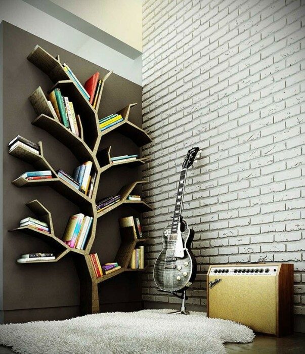 Восьмой вариант — полки под углом. И наконец, для тех, кто желает добавить некоторое креативное решение в свое хранилище книг, рекомендуется использовать специальные полки под углом. Такие полки не только позволяют компактно разместить книги, но и создают интересный дизайн доме.