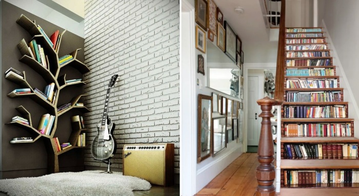 Третий вариант — любая горизонтальная поверхность со специальными декоративными ограничителями. Это уникальная возможность создать книжную полку, которая будет выглядеть как часть декора. сейчас их существует огромное множество. Они могут быть парными, выполненными в совершенно различных вариациях: животные, растения, вазы, человеческие руки или мировые достопримечательности.