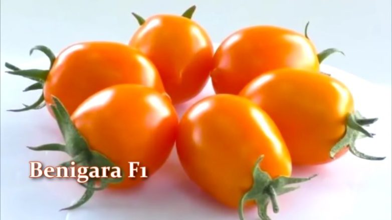 Ранний гибрид оранжевых томатов с вегетационным периодом 105-110 дней. Растение очень компактное с короткими междоузлиями. На каждом стебле образуется до 8 стеблей. На каждой кисти формируется до 9 плодов сливовидной формы массой 100-120 грамм.