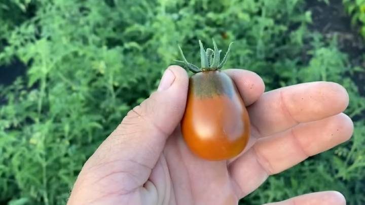 Это небольшая сливка (около 30 г). Очень вкусный и раннеспелый томат — созреет одним из самых первых в открытом грунте! Сорт индетерминантный, высокий (1,5-2 м). Можно выращивать и в огороде (с подвязкой), и в теплице.