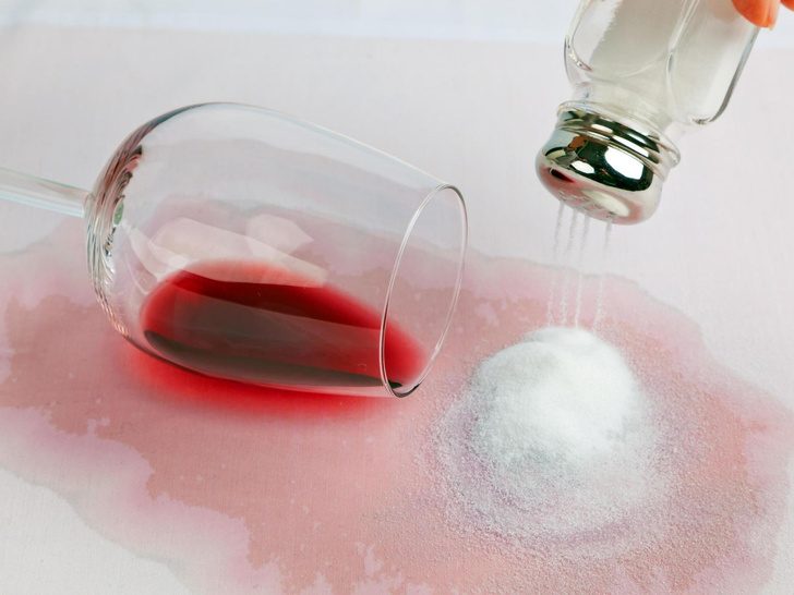 На самом деле, настоящее чудо с пятнами на скатерти может сотворить обычная поваренная соль — особенно если убрать нужно свежее пятно, например, от красного вина. Достаточно смочить пораженный участок ткани водой и засыпать его солидной горкой соли, которую после можно просто смахнуть губкой. Вино быстро впитается в соль, поэтому от пятна не останется и следа, а ее мелкие крупицы смоются в стиральной машине под холодной водой.