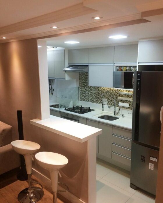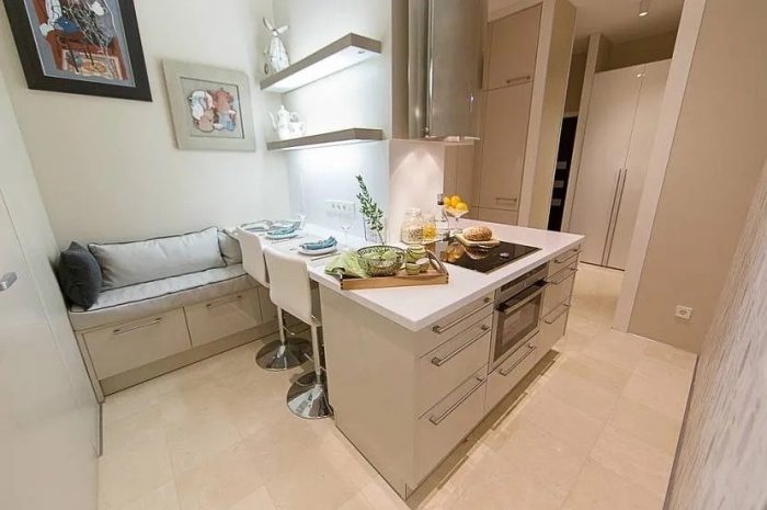 Громоздкая бытовая техника для такой кухни не подойдёт