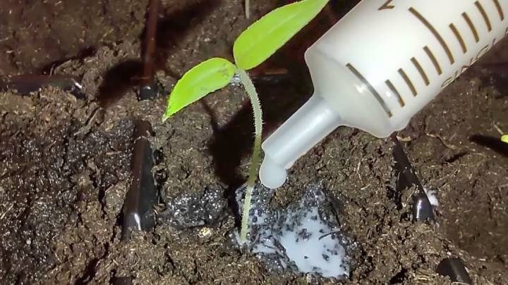 Это и удобно, и просто, и лишнего не нальёшь. Внесите по 10 капель под каждый росточек.