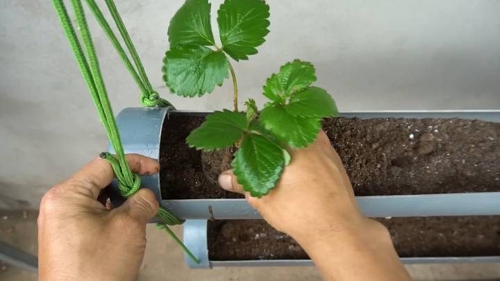 Вырастите клубнику необычным способом — в подвесном кашпо. Делается оно из обыкновенной ПВХ трубы. В таком импровизированном огороде тоже получится собрать хороший урожай!