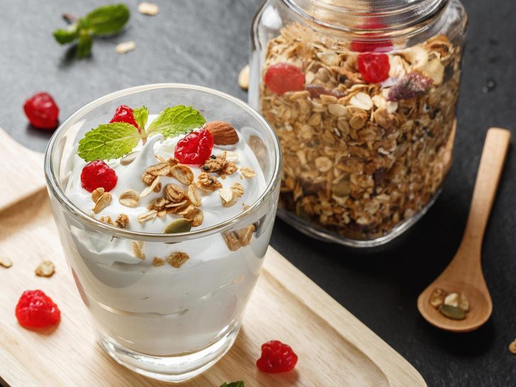 Кроме того, что йогурт хорош на завтрак — просто так или с мюсли — с ним можно приготовить и вкусный соус. Например, смешайте греческий йогурт с измельченным чесноком и зеленью — и заправьте салат или макайте в него мясо. Йогурт также подойдет, как замена майонеза — например, в мясе по-французски.