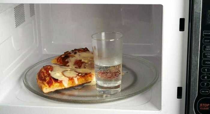 Кусочек пиццы, разогретый с водой, будет мягким.