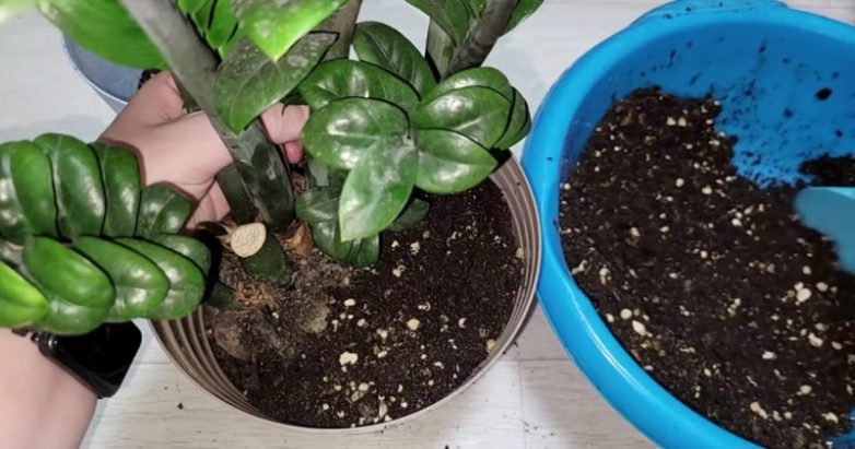 Пересадку замиокулькаса следует осуществлять во влажный грунт. Первый месяц после пересадки растение не будет нуждаться в подкормках, так как свежий грунт содержит большое количество полезных веществ.