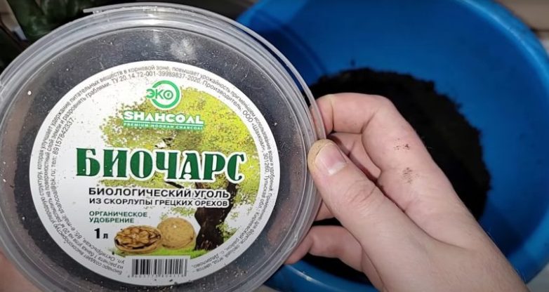 Биочарс — это уголь, полученный при сжигании скорлупы грецкого ореха. Для того чтобы полезные вещества в угле стали доступными для растений, он дополнительно обрабатывается древесным уксусом.