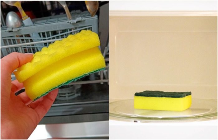 Губки можно дезинфицировать в микроволновке или посудомойке