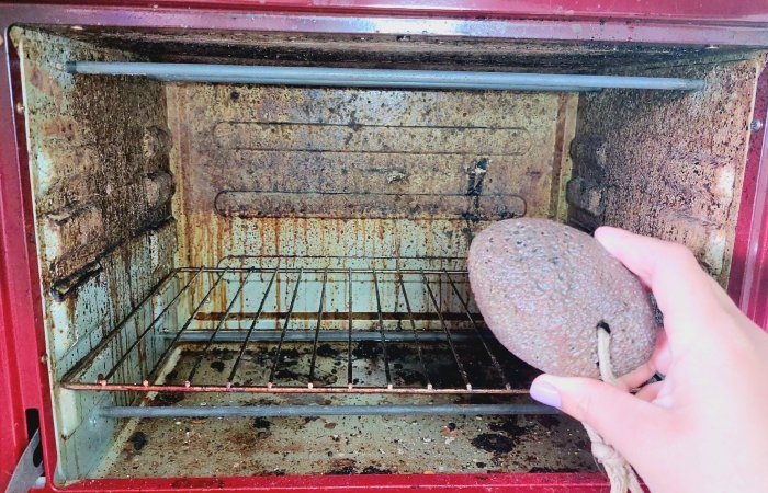 Все, что вам понадобиться, — это пемза для ног. Именно ей стоит натереть особо загрязнённые участки духовки. Вы удивитесь, но нагар легко будет уходить со стенок. И никакой агрессивной химии в месте приготовления еды.