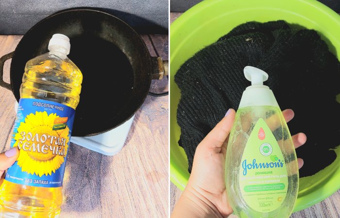 Просто возьмите растительное масло и заполните им дно сковороды тонким слоем. После чего включите огонь и хорошенько раскалите масло. Выключите плиту и дайте сковороде остыть. В завершении вытрите ее насухо бумажным полотенцем. На дне сковороды образуется плёнка из масла, которая не позволит продуктам к ней прилипать.